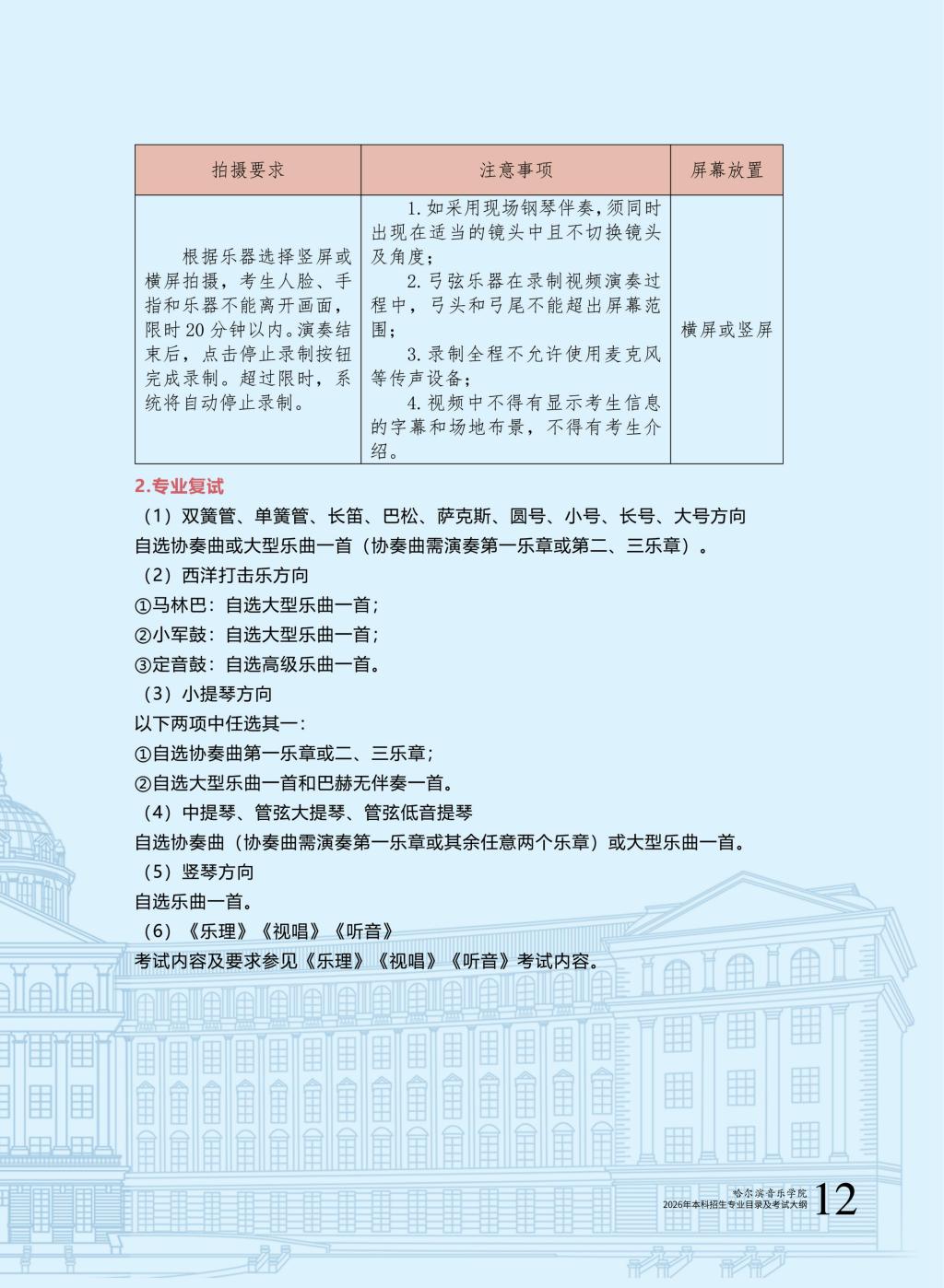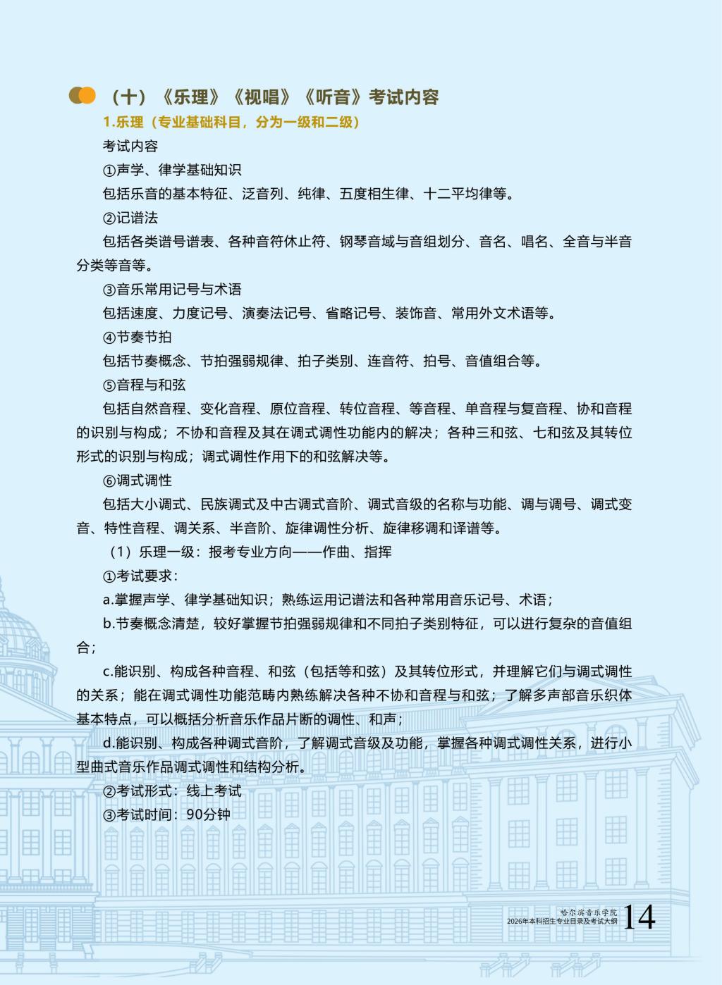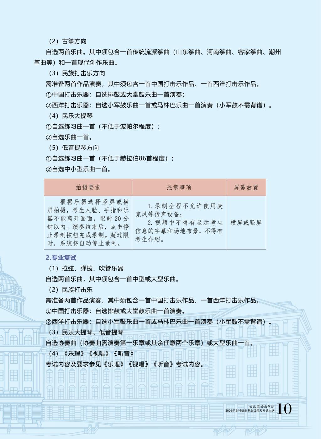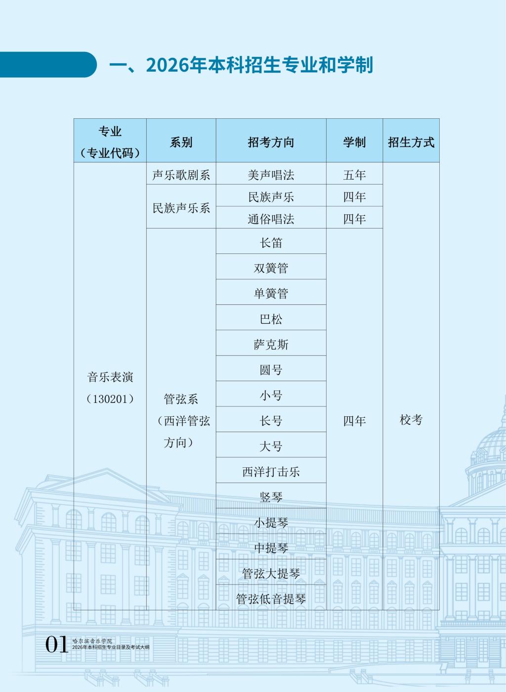 哈尔滨音乐学院2026年本科招生专业目录及校考专业考试大纲