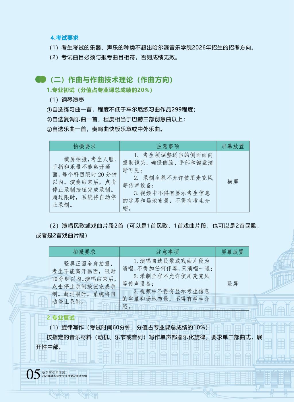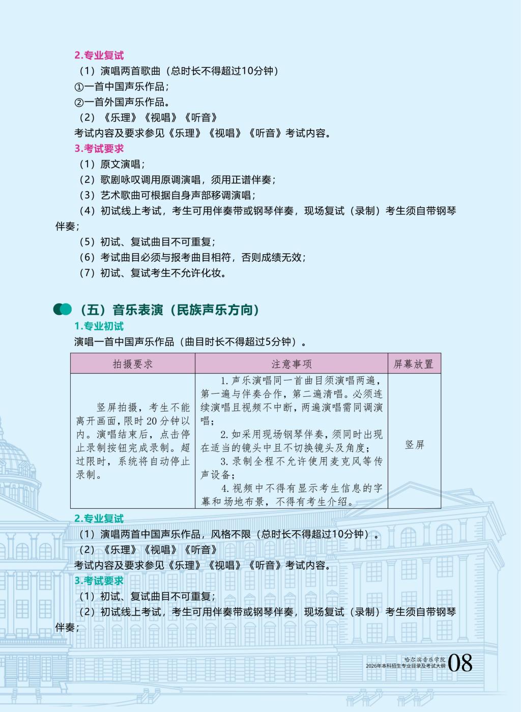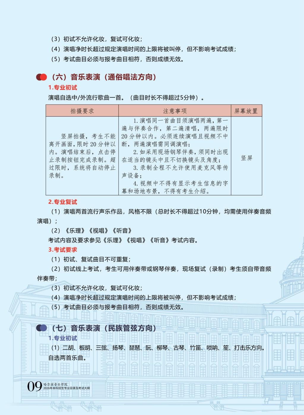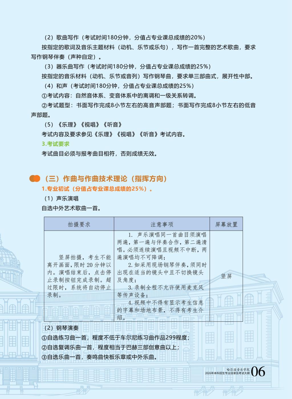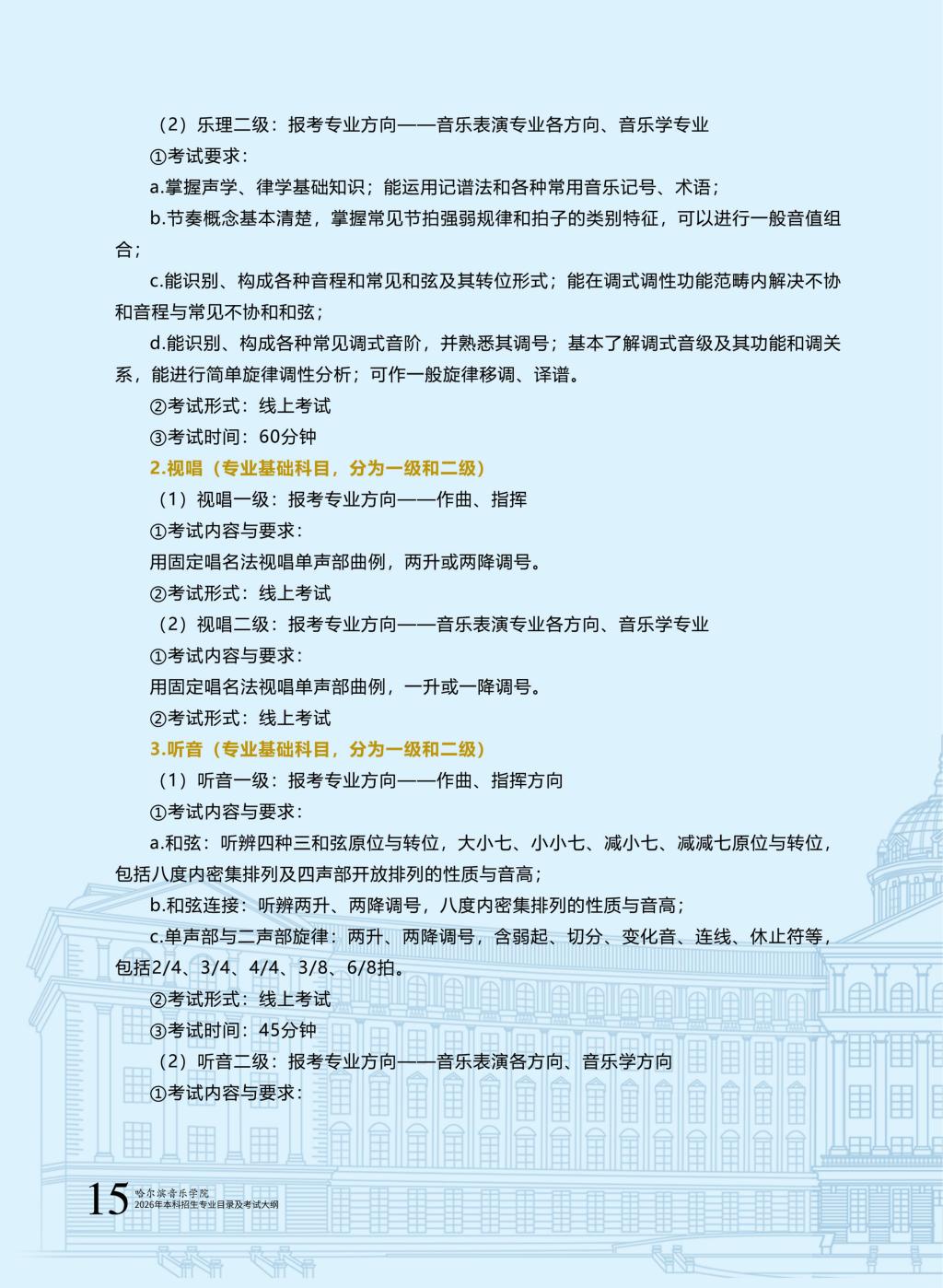 哈尔滨音乐学院2026年本科招生专业目录及校考专业考试大纲