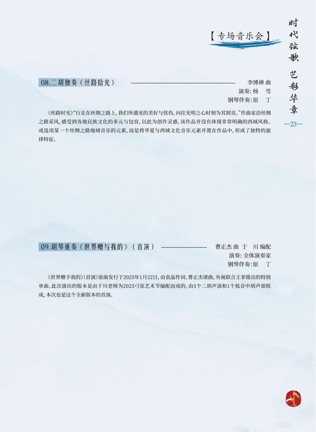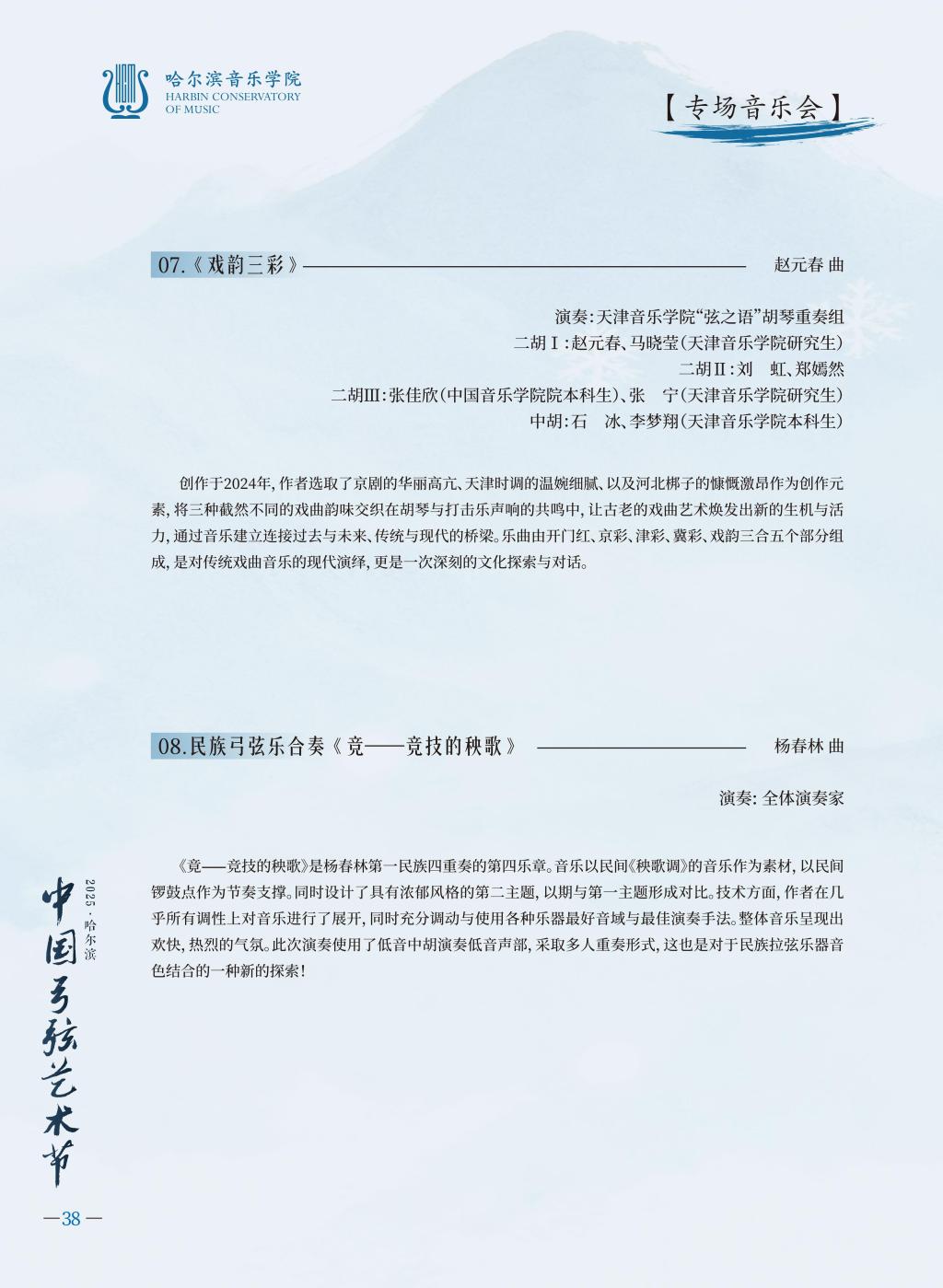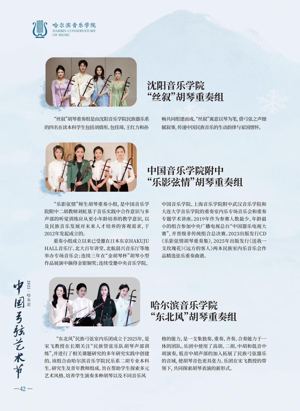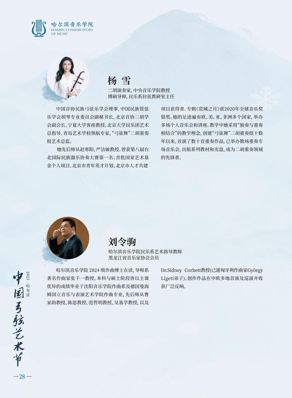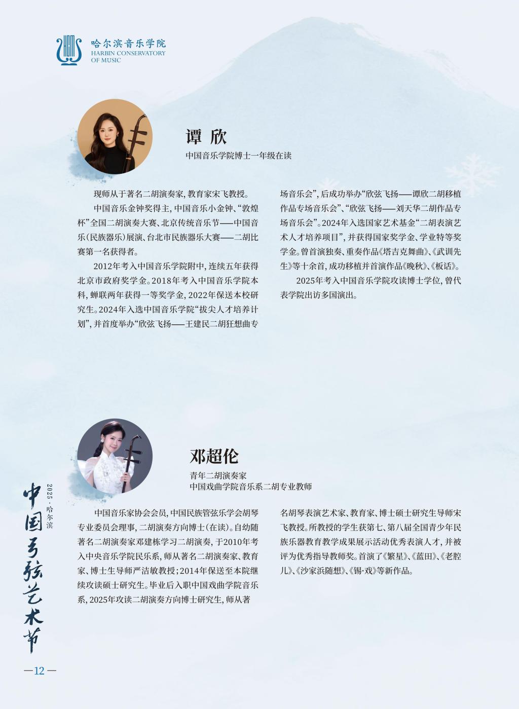 由哈尔滨音乐学院主办的2025中国弓弦艺术节即将启幕!本届弓弦艺术节以“时代弦歌 艺彩华章”为主题,通过表演、创作、教学、研究四位一体的立体架构,对新时代胡琴艺术的发展和追求以多方位呈现。