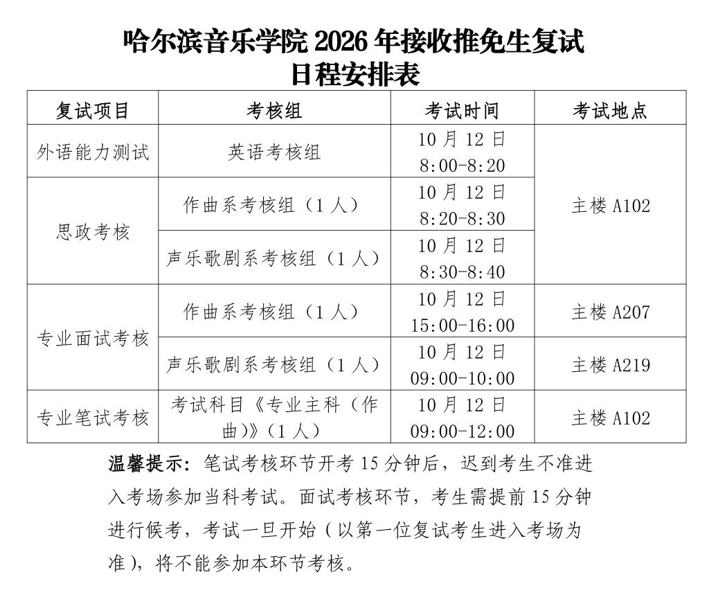 哈尔滨音乐学院关于开展2026年接收推免生复试的通知