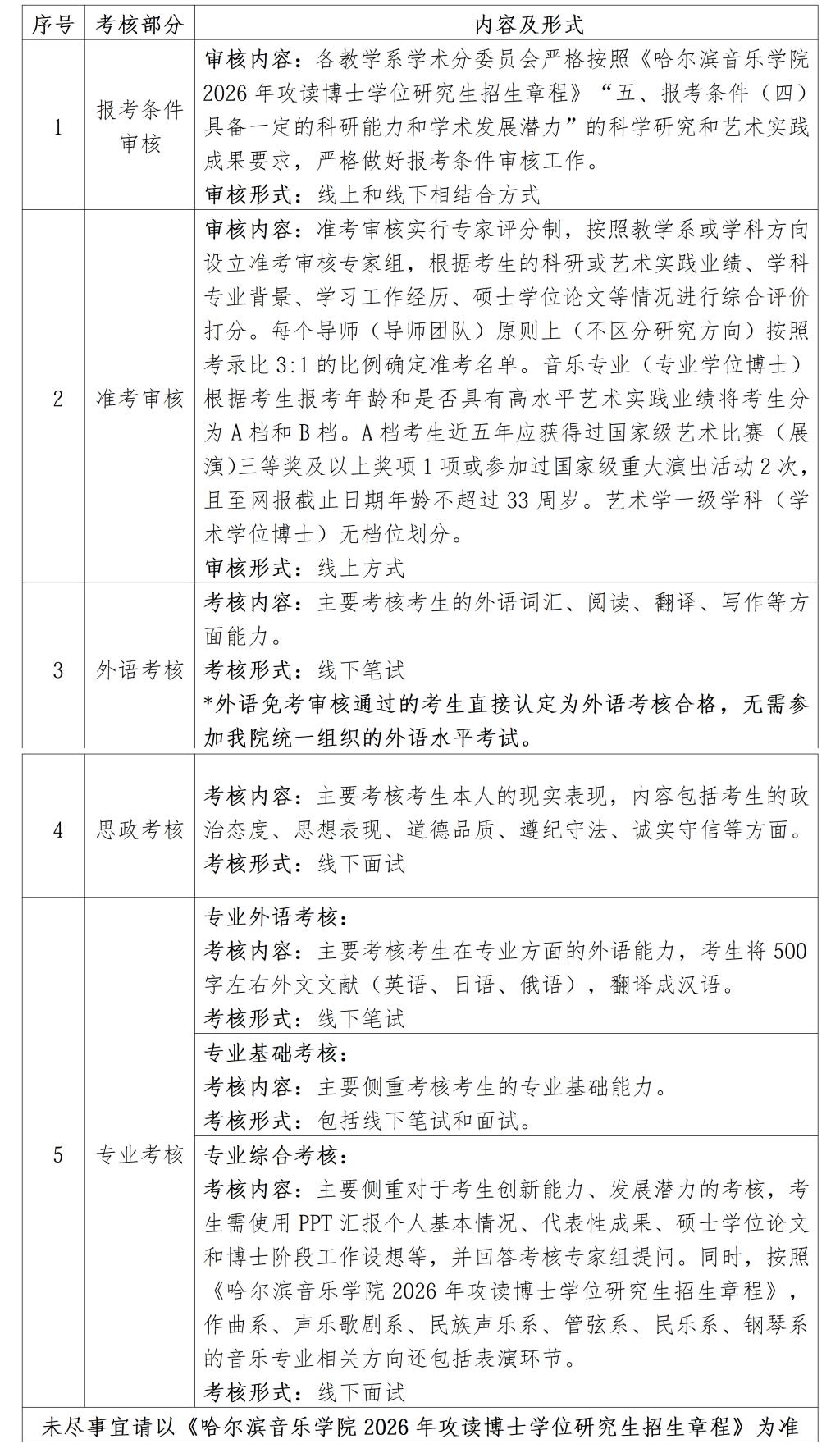 1.命题方案、制卷方案、评卷方案将参照《哈尔滨音乐学院硕士研究生招生工作管理规定》相关原则和要求,结合我院博士研究生招生考试实际,另行制定。