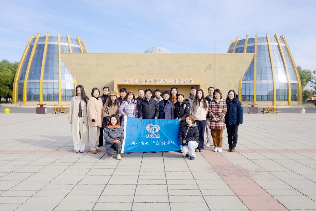 在黑龙江省中华民族共同体体验馆,教师们通过沉浸式的展览和互动体验,全面了解了中华民族多元一体的历史脉络与文化交融,深刻体会到各民族共同团结奋斗、共同繁荣发展的重要意义。参观过程中,教师们深受鼓舞,即兴表演了单簧管独奏《山丹丹花开红艳艳》、单簧管和小提琴合奏《我爱你中国》、二胡独奏《战马奔腾》和民歌独唱《新货郎》等节目,参观活动在“中华民族一家亲 同心共筑中国梦”响亮的口号声中结束。