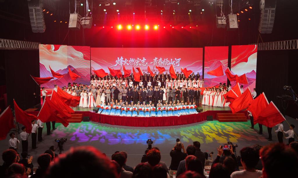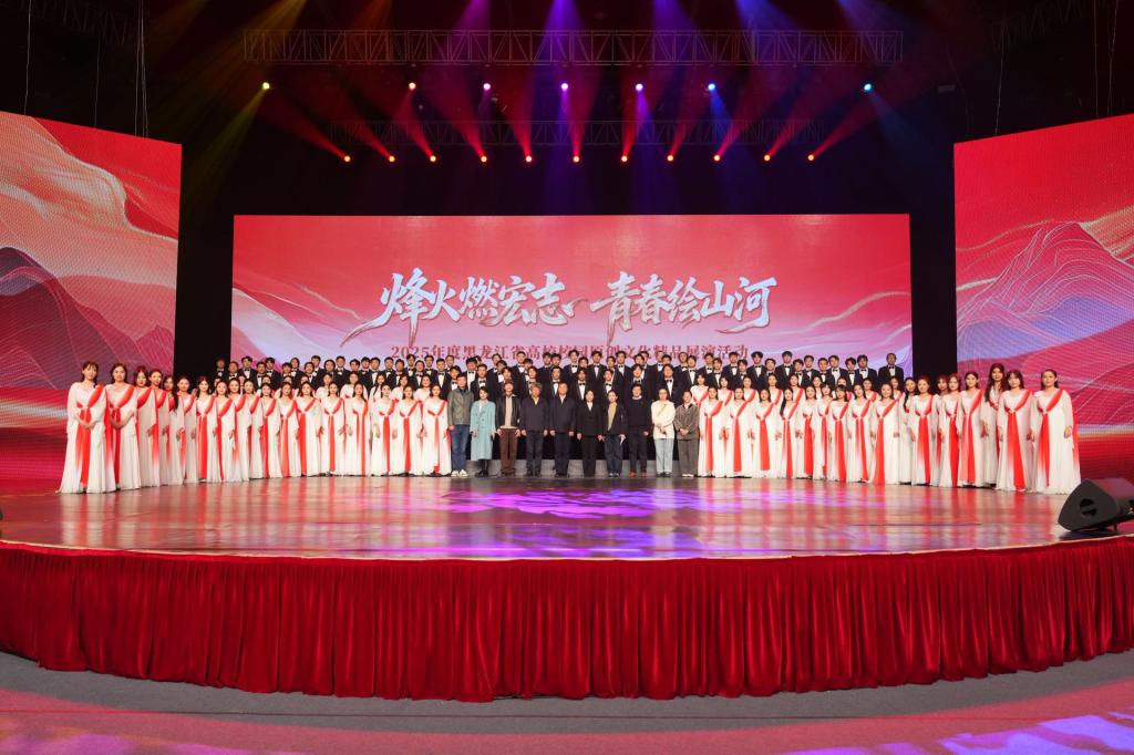 为深入贯彻全国、全省教育大会精神,落实立德树人根本任务,充分展现龙江高校“一校一品”文化涵育工程成效,进一步打造“黑土地上的精神力量”大思政育人品牌,10月28日晚,“烽火燃宏志 青春绘山河”2025年度黑龙江省高校校园原创文化精品展演在黑龙江广播电视台2800米演播大厅举行。哈尔滨音乐学院合唱团作为重要参演单位之一,以精湛的艺术表现力和饱满的青春热情演唱学院原创音乐作品,为现场观众呈现了一场融思想性与艺术性于一体的音乐盛宴,充分展现了学院以音乐为载体深化思想政治教育的显著成效。