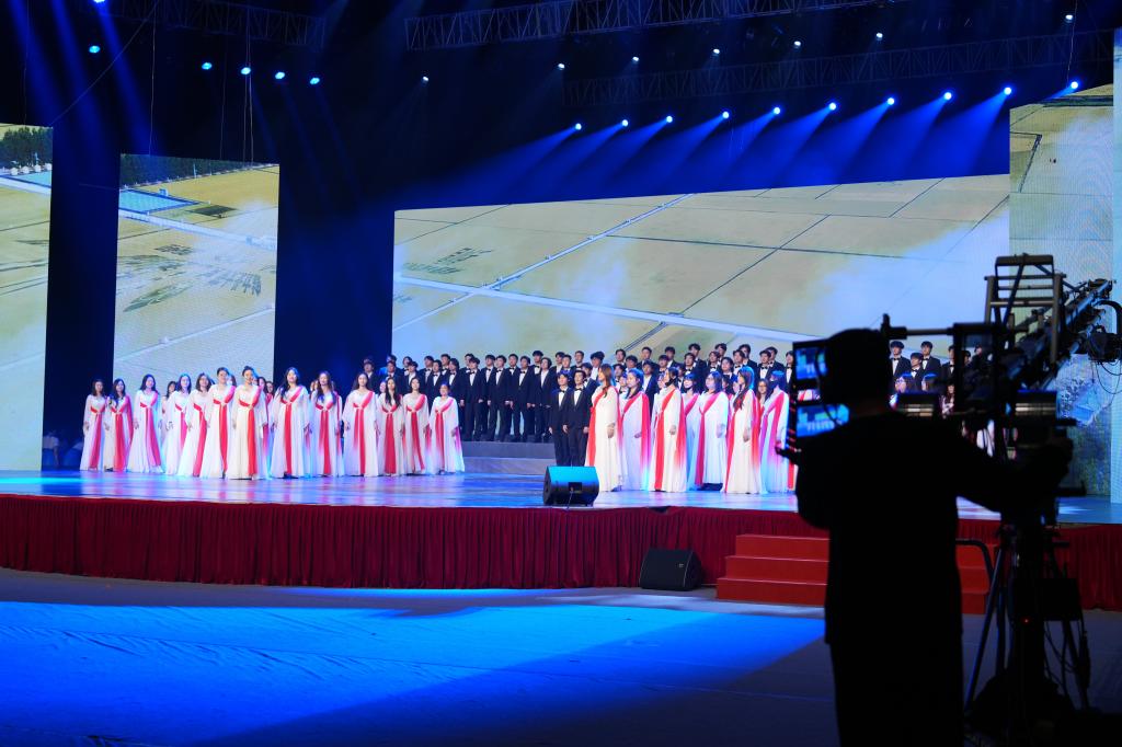 在演出尾声,全体演员与观众共同齐唱《歌唱祖国》,激昂的旋律引发强烈共鸣,现场掌声如潮,气氛热烈,为整场展演画上圆满句号。