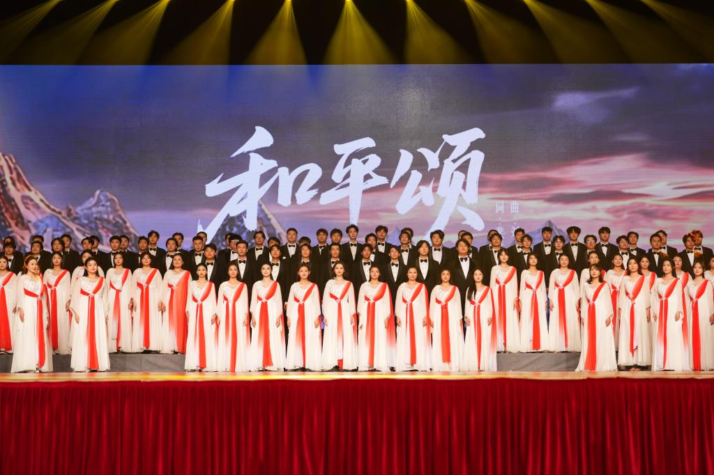 随后上演的《和平颂》由作曲系副教授刘峤作曲,旋律恬静温暖,以和谐音韵传递人们对美好生活的向往,营造出祥和安宁的意境。