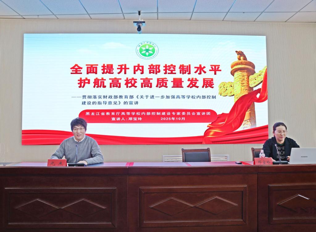 为深入贯彻落实黑龙江省教育厅关于加强高等学校内部控制建设的决策部署,全面推进《哈尔滨音乐学院内部控制建设与实施办法》落地见效,10月31日,学院在主楼A508会议室举办内部控制建设专家宣讲会。会议邀请黑龙江省教育厅“高校内部控制建设专家宣讲团”专家邓宝玲作专题辅导。学院党政班子成员、中层干部参加培训,副院长元杰主持会议。