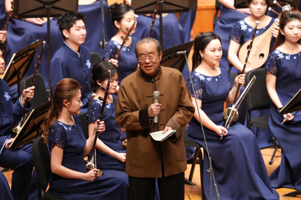 音乐会以“继承与发展、守正与创新”为主线,由哈尔滨音乐学院青年民族乐团演出多部原创作品。本场演出由胡琴表演艺术家、学院院长宋飞和民乐系主任姜克美领衔,指挥家叶聪执棒,音乐家田青担任导聆,学院青年教师肖贺元、张馨元、尚帅担任独奏。