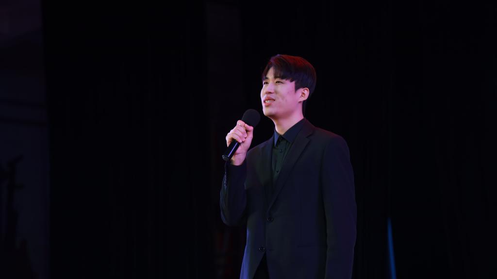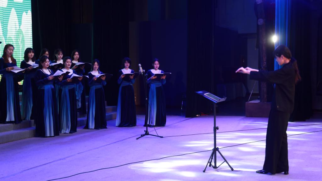 第四乐章“冬·守望” 歌颂志愿精神的坚韧与传承。原创歌曲《向日葵的候鸟》以青年学子的笔触,勾勒出执着坚守、静待春来的志愿品格。教师领唱的《阳光路上》将活动气氛推向高潮。