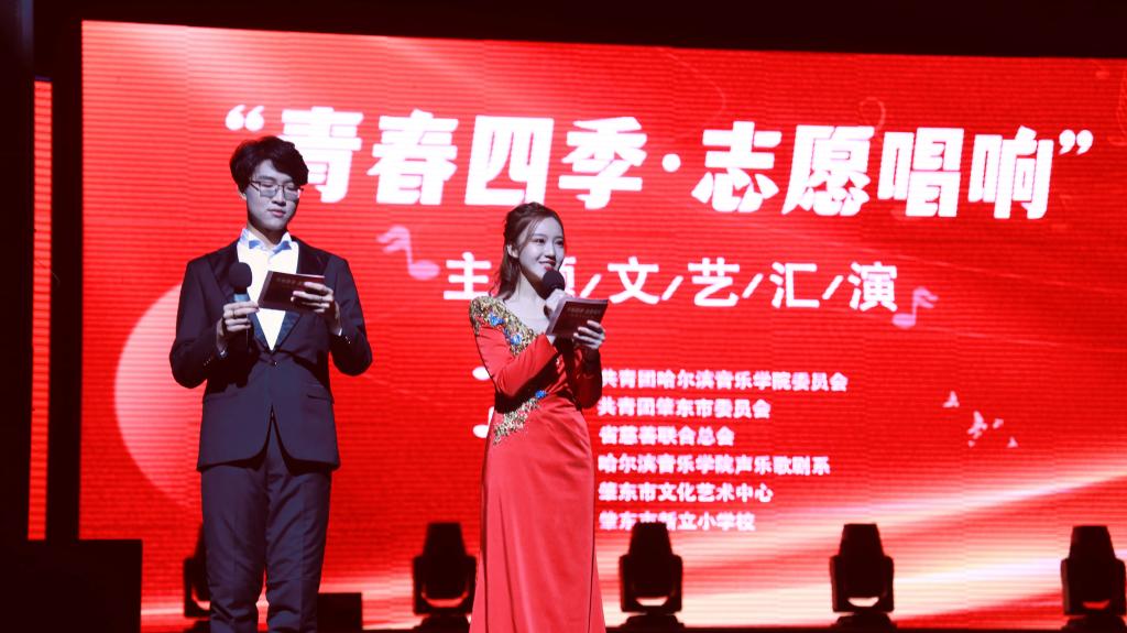 为深入学习贯彻习近平新时代中国特色社会主义思想,弘扬“奉献、友爱、互助、进步”的志愿精神,结合第38个国际志愿者日精神,由共青团哈尔滨音乐学院委员会、共青团肇东市委员会联合主办,黑龙江省慈善联合总会、哈尔滨音乐学院声乐歌剧系、肇东市文化艺术中心、肇东市新立小学校共同协办的“青春四季·志愿唱响”主题文艺汇演在肇东市影剧中心举办。绥化市政协副主席、党组成员刘宝国,哈尔滨音乐学院副院长、党委委员崔志林,肇东市委副书记张贺等领导莅临现场。