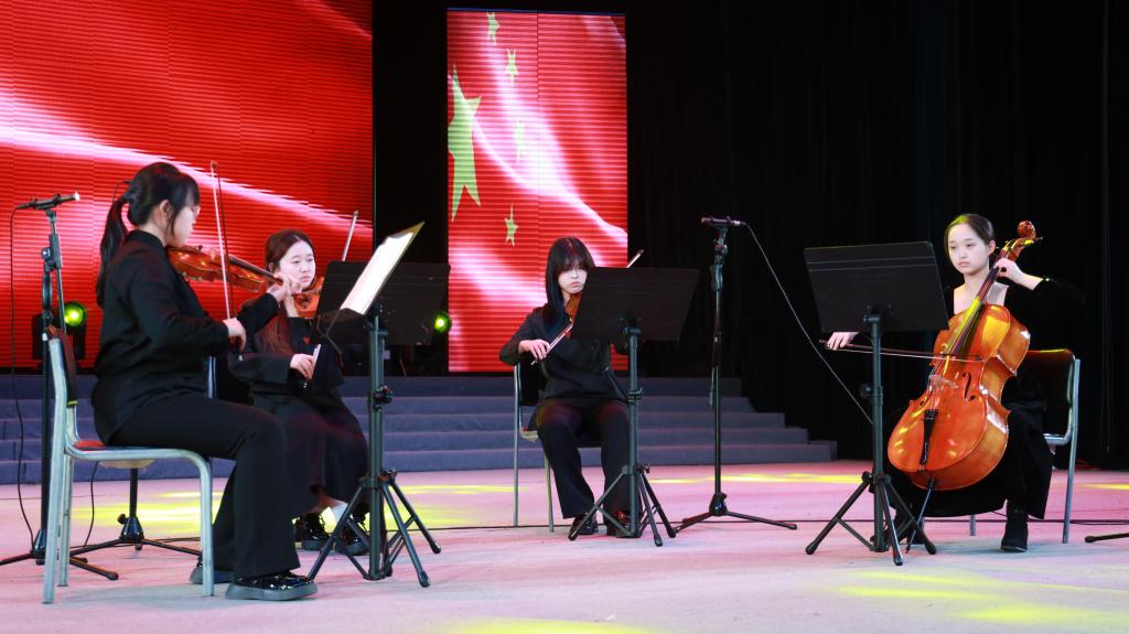 第一乐章“春·萌动”以激昂的打击乐《龙腾虎跃》开场,奏响了志愿征程的铿锵号角;《童年》《黑猫警长》的纯净合唱引领观众回味初心;弦乐四重奏《我爱你中国》《莫斯科郊外的晚上》则抒发了志愿服务情系家国、开放包容的广阔胸襟;歌曲朗诵《给你给我》深情诠释了志愿行动中爱与温暖的传递。