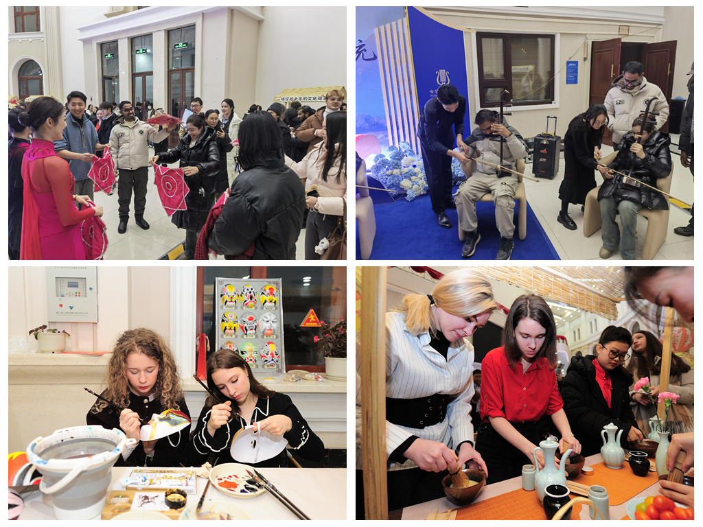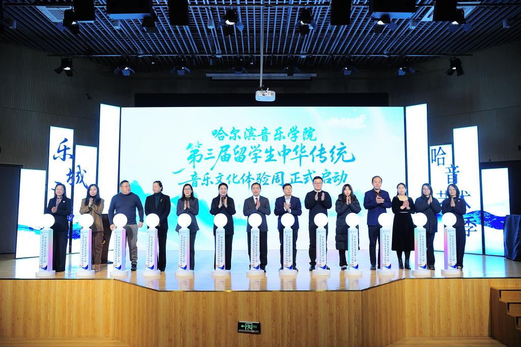 曹叠峰、宋飞与10所在哈高校外事部门领导共同为学院第三届留学生中华传统音乐文化体验周启幕。