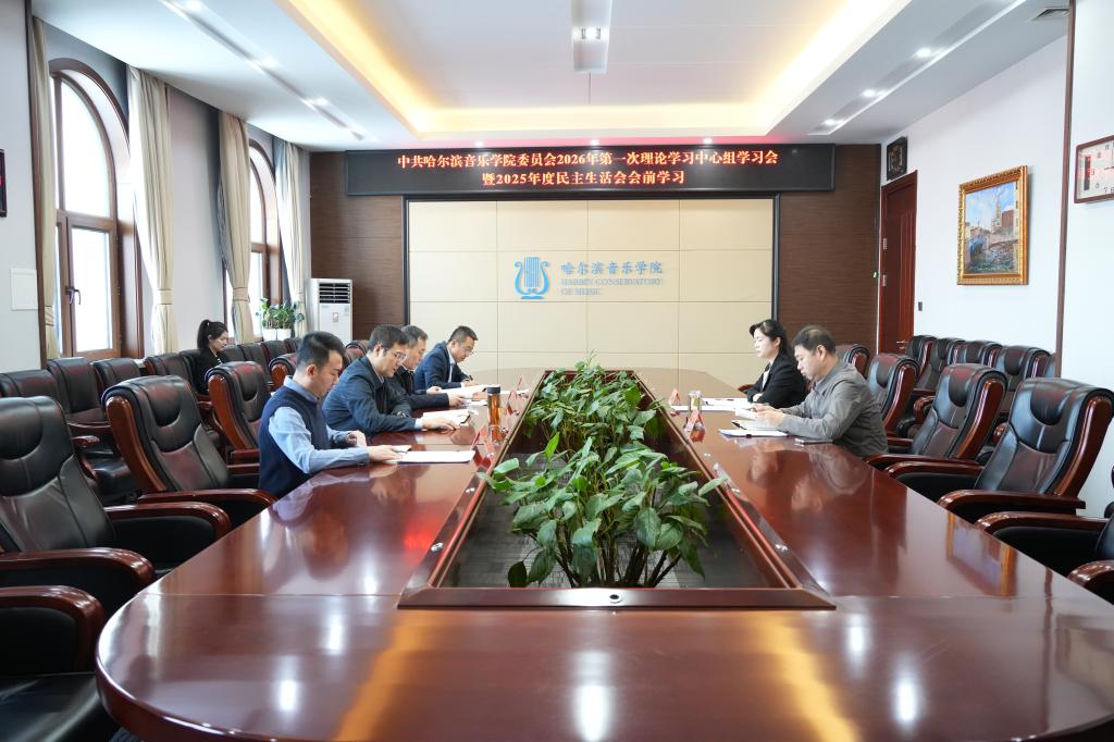 1月15日,学院在主楼A511会议室召开中共哈尔滨音乐学院委员会2026年第一次理论学习中心组学习会暨2025年度民主生活会前学习会,学习会围绕习近平总书记视察龙江重要讲话重要指示精神、习近平总书记在中央政治局2025年度民主生活会上的重要讲话精神及听取二十届中央巡视省(自治区、直辖市)情况汇报时的重要讲话精神为主题开展学习研讨,部分党委理论中心组成员出席会议,学习会由党委书记雒文虎主持。