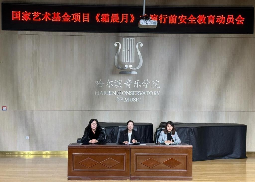 1月16日下午,学院召开国家艺术基金项目《霜晨月》首演协调推进会及行前安全教育动员会。学院副院长、党委委员马晓春出席会议。宣传统战部(党委教师工作部)、科研处(艺术实践处)、财务处、学生处(学生工作部、武装部)、民族声乐系党总支相关负责人及参演各工种负责人共同参会。