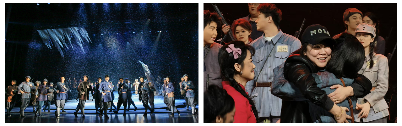 学院围绕立德树人根本任务,坚持党建引领,推进“教研创演”一体化创演,将东北抗联的红色基因融入艺术创作,把《霜晨月》创排作为打造音乐历史思政大课、深化思政教育的重要载体,融入艺术观和价值观教育,全方位、多层次为项目保驾护航,彰显了高校党建与艺术教育深度融合的丰硕成果。经过历时近两年的采风、创作、排演,学院近百名师生与协演团队携手登台,以精湛的表演赢得专家和观众的高度评价。