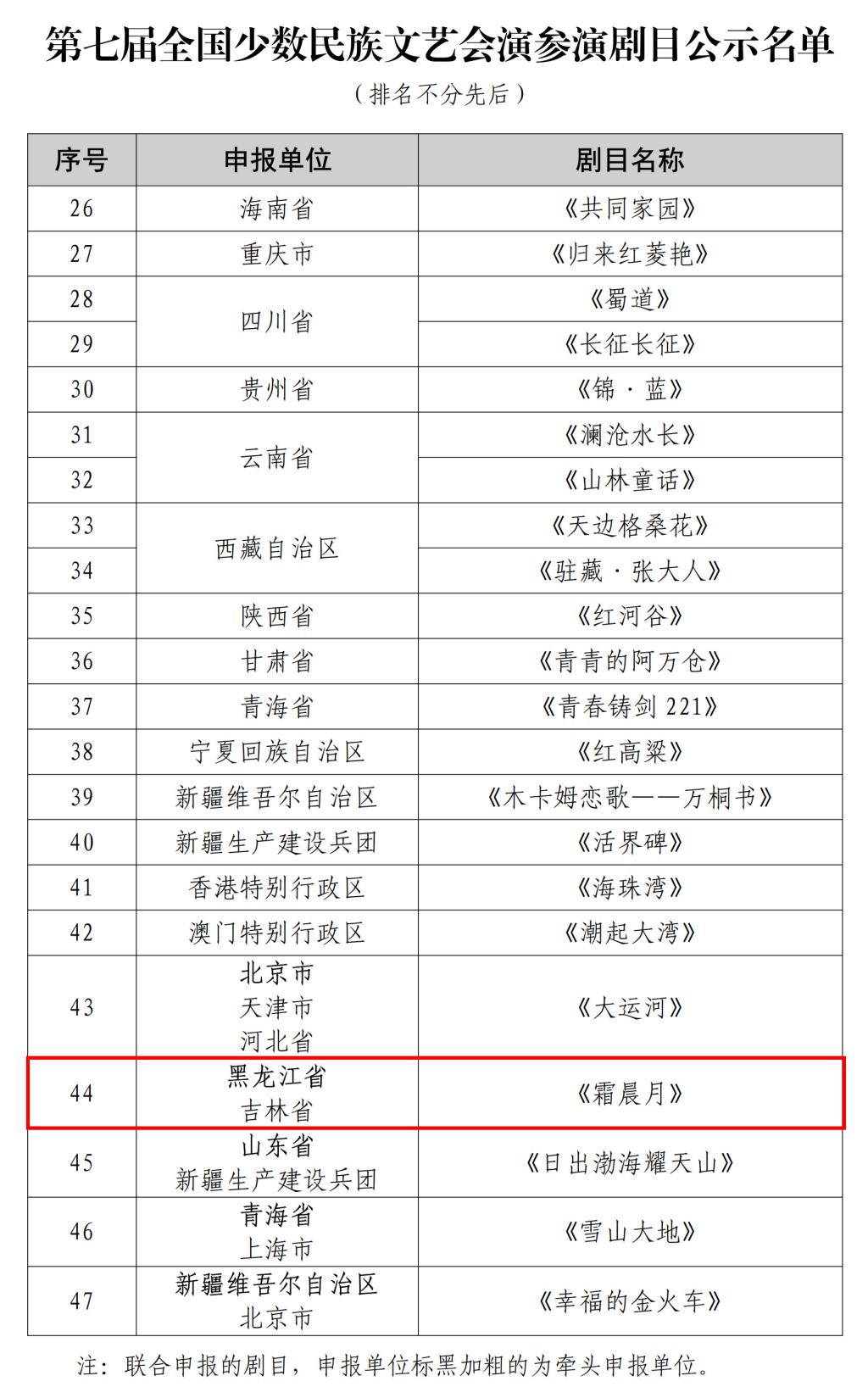 近日,国家民委发布《关于第七届全国少数民族文艺会演参演剧目的公示》,经过严格遴选,由哈尔滨音乐学院出品的民族歌剧《霜晨月》成功入围第七届全国少数民族文艺会演参演剧目!