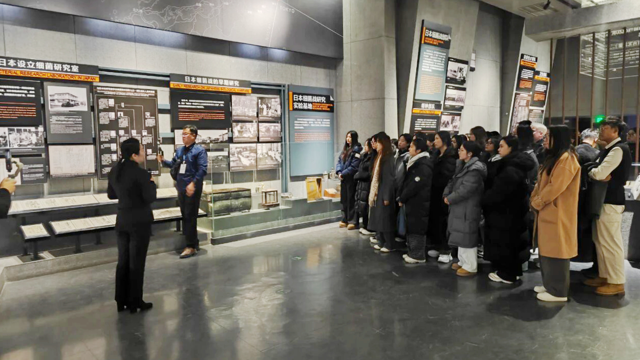 活动在庄严氛围中开始,线上线下师生跟随侵华日军第七三一部队罪证陈列馆副馆长张阳的讲解,依次参观“日本细菌战体系”“七三一部队”“人体实验”等展厅。通过历史文物、档案资料和复原场景,让师生深入了解日本军国主义的侵略罪行和中华民族英勇抗战的历史,在沉浸式体验中接受思想洗礼。