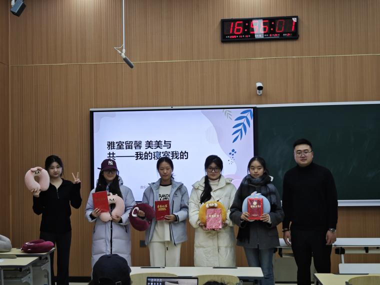 本次活动为期一个月,重点围绕寝室安全纪律、环境卫生、内务整理等方面展开,进一步加强对“晚归”等日常行为的管理,引导学生养成持续性的良好生活习惯,鼓励学生展示积极向上的面貌,增强集体归属感和自律意识。经过综合评选,活动共评选出模范雅室奖、洁净宜居奖、特色风采奖各两名。