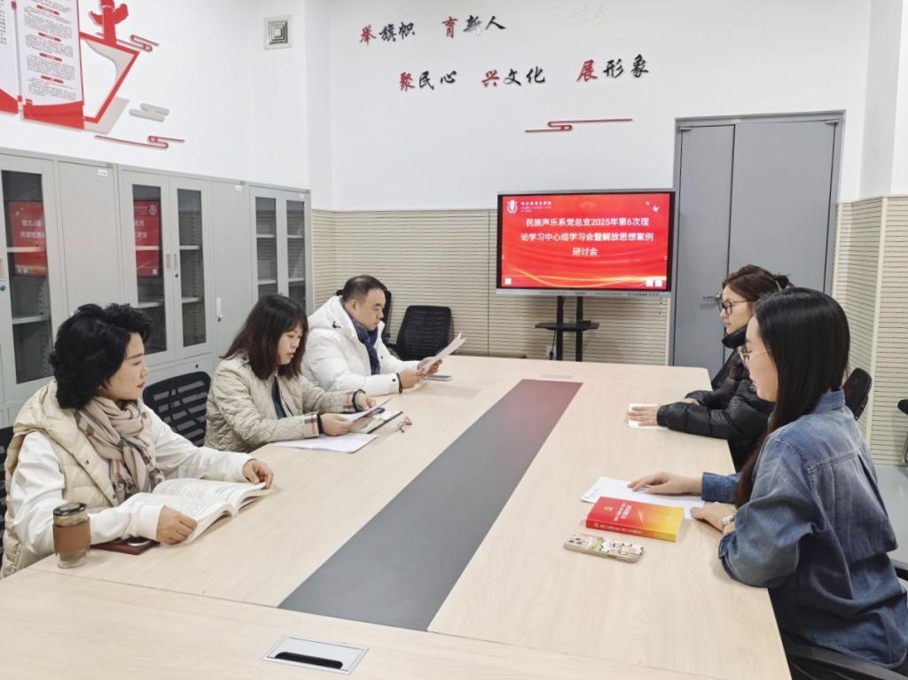 为进一步推动深化能力作风建设取得实效,同日,民族声乐系党总支召开解放思想案例研讨会。张冰以《民歌传承黑土精神 思政奏响龙江旋律》为题作主题发言,结合典型案例,就如何提高思政工作实效,创新工作思路,系统构建大思政育人体系,持续推动工作发展分享了学习体会。与会人员表示,将坚持解放思想,发挥专业优势,打造民族声乐系品牌特色,为学院高质量发展和龙江文化建设贡献力量。