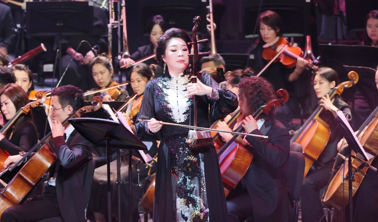 学院坚持“音乐+思政”育人模式,将红色基因融入专业教学与社会实践。学院师生参演“抗联魂·和平颂”交响音乐会,以二胡与乐队合作演绎《嫂子颂》,通过凄美婉转的弦音再现抗战英雄的感人事迹,将音乐艺术的感染力与爱国主义教育深度融合。在这场跨越时空的艺术对话中,师生们以音符为笔、以舞台为纸,书写着“不忘历史、砥砺前行”的使命担当。