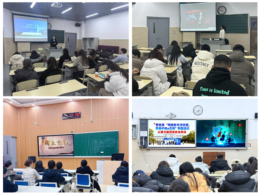 筑牢安全防线,守护青春平安。管弦系团委聚焦校园安全重点,开展两大安全防护专题活动。活动聚焦校园重点安全问题,深入剖析宿舍违规用电、私拉乱接电线的危害,系统讲解火灾报警、初期火情处置、应急避险等实用知识;现场播放《校园网络安全警示录》宣传片,以真实案例再现诈骗过程,演示国家反诈中心App及手机安全设置使用方法,提升学生安全防范与自我保护能力。