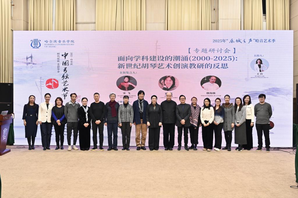 12月13日,2025中国弓弦艺术节的核心学术活动——“面向学科建设的潮涌(2000-2025):新世纪胡琴艺术创演教研的反思”专题研讨会在主楼419会议室成功举办。本次研讨会由哈尔滨音乐学院音乐学系主任王岩主持,汇聚了来自全国各大顶尖音乐院校和艺术院团的20位专家学者、演奏家、教育家,围绕新世纪以来胡琴艺术的发展轨迹、学科建构与未来展望展开了一场深度、系统、多维的学术对话。