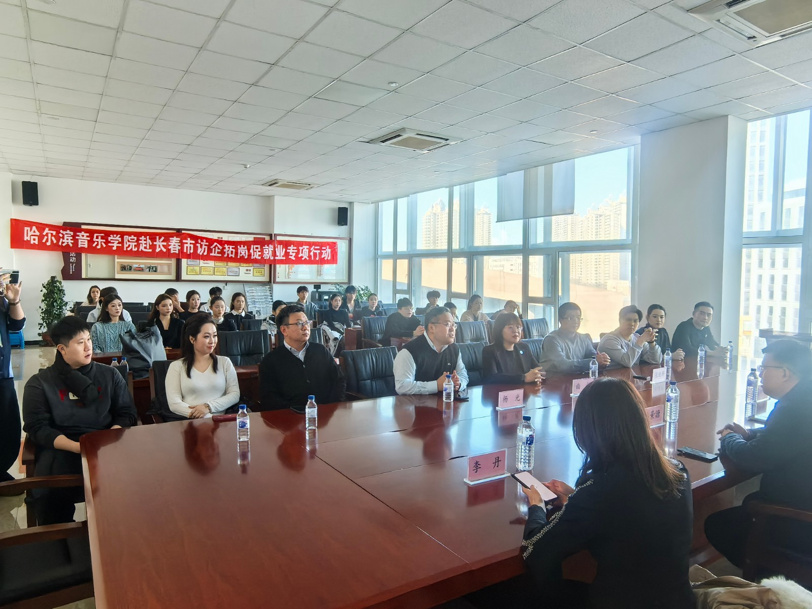 为促进2026届毕业生高质量就业,12月14日,哈尔滨音乐学院学生处(学生工作部、武装部)与管弦系党总支联合赴长春市开展访企拓岗专项活动。学院代表与长春市群众艺术馆馆长韩景源、副馆长李丹等就校地合作进行座谈交流。