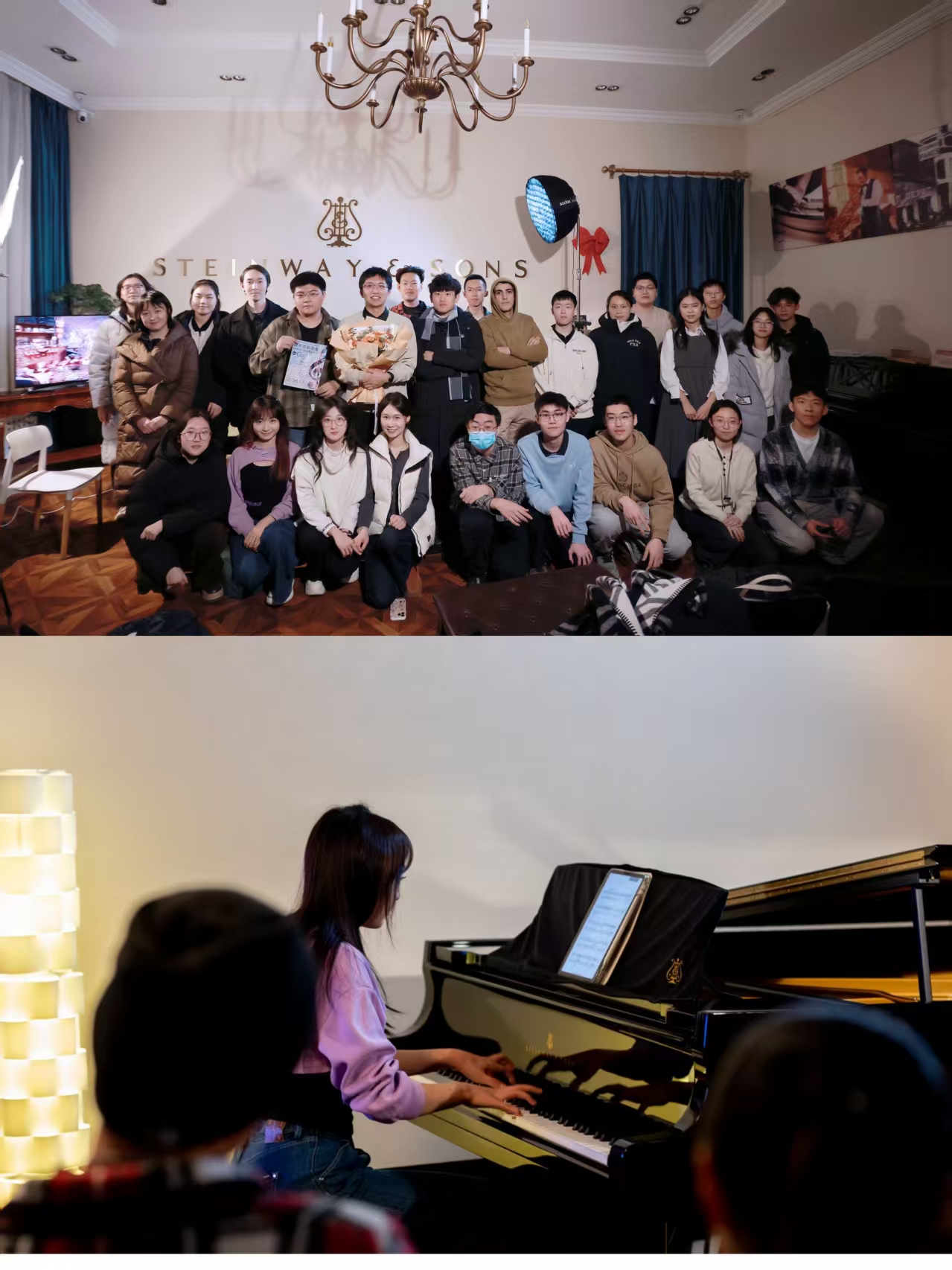 琴音传情,共贺新春。在寒假来临之际,钢琴系学生会联合哈尔滨工业大学轻音学生组织共同举办“琴音汇两校 华章贺新年”主题音乐交流活动。活动现场,两校学子联袂登台,以悠扬琴声传递青春热忱,用灵动旋律奏响新春序曲。这场活动不仅为两校学子搭建了交流学习的平台,更丰富了学生们寒假前的校园生活,让大家在欢声笑语中感受浓浓的节日氛围。