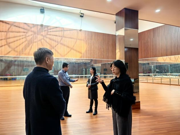 在黄埔区文化馆,调研组与黄埔区文旅局副局长陈淼、区文化馆馆长张铭丽、副馆长王丹等进行了座谈。张磊介绍了作曲系办学特色与人才培养成果,表达了对接地方文化需求、输送优秀人才的意愿。陈淼副局长对方详细介绍了区域文化产业发展现状及对创作型音乐人才的需求,希望双方在实习实践、联合创作、人才招聘等方面深化合作。双方就推动艺术项目合作达成初步共识。