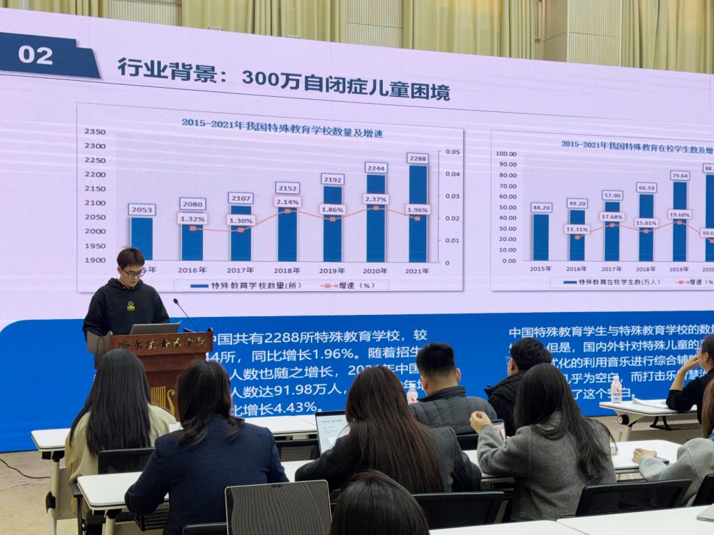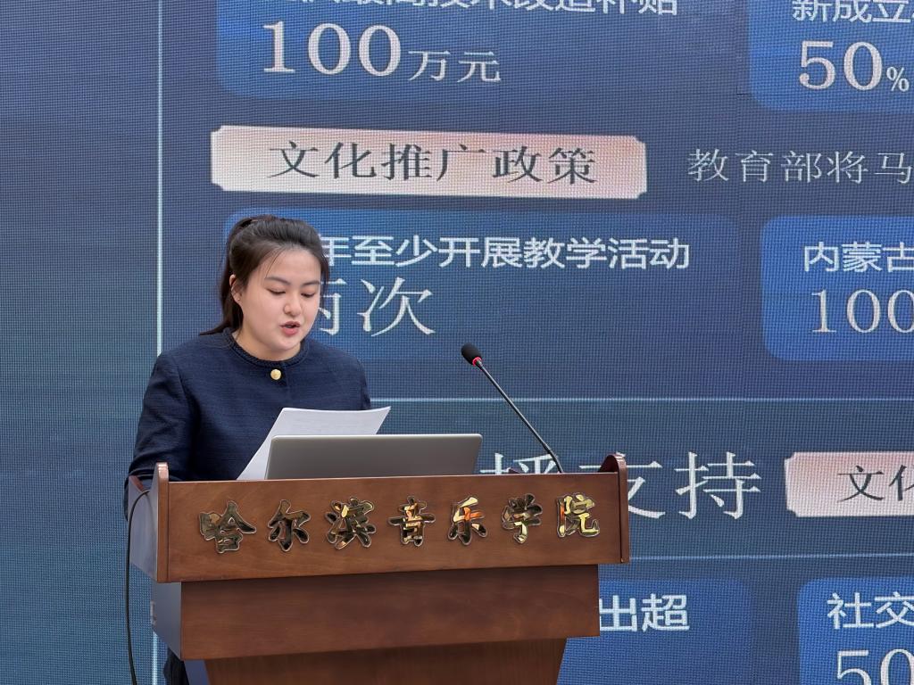 比赛现场,各参赛团队依次登台,通过PPT演示汇报,全方位讲解项目背景、产品设计、市场分析、运营模式、发展规划等核心内容。各团队紧扣学院艺术专业特色,将音乐艺术与创业实践深度融合,打造出一个个兼具创意性、实践性与市场潜力的优质项目,充分展现出哈音学子扎实的专业功底与开阔的创新视野。汇报过程中,评委老师全程认真聆听各项目展示,围绕项目核心亮点、落地可行性、商业模式等关键维度细致考量、严谨打分。