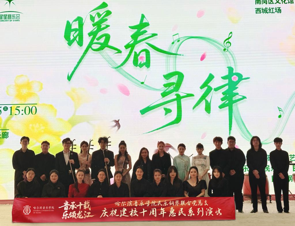 为庆祝哈尔滨音乐学院建校十周年,深入践行艺术为民初心,展现办学育人成果,3月25日,民乐钢琴联合党总支策划推出的“音承十载 乐颂龙江”庆祝建校十周年惠民演出季首场音乐会《暖春寻律》,在西城红场当代艺术中心成功举办。