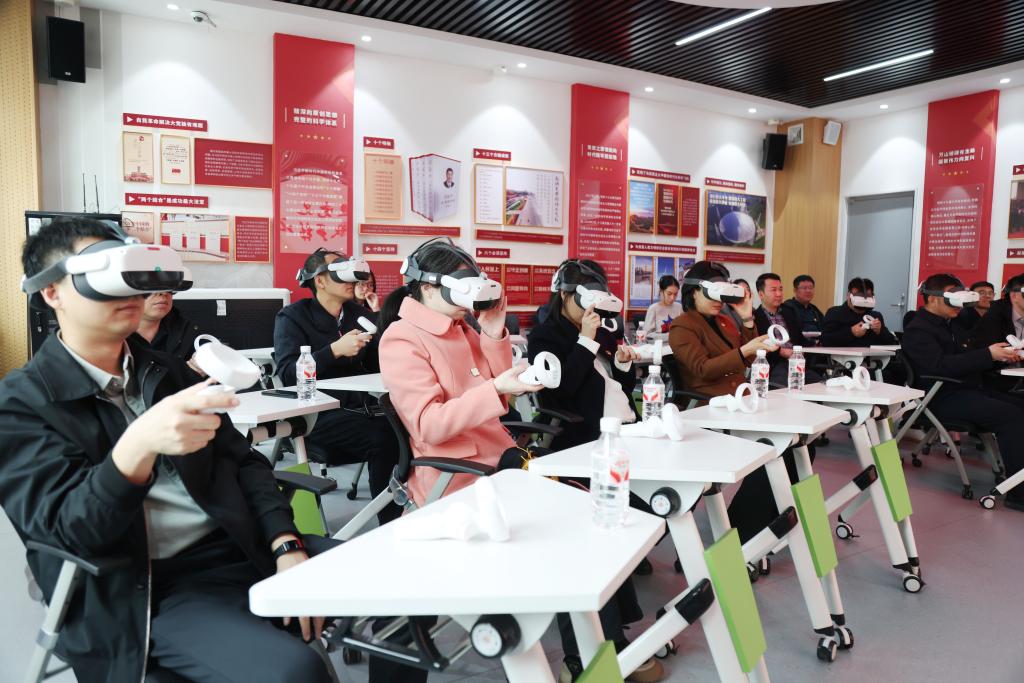 在虚拟仿真教学环节,依托学院“习近平新时代中国特色社会主义思想概论”课虚拟仿真体验教学平台,党员们借助3D技术沉浸式走进红船精神、抗战精神等虚拟场馆,突破时空限制、还原历史场景,让红色教育可感可触、入脑入心,切实提升理论学习教育的吸引力、感染力与实效性。