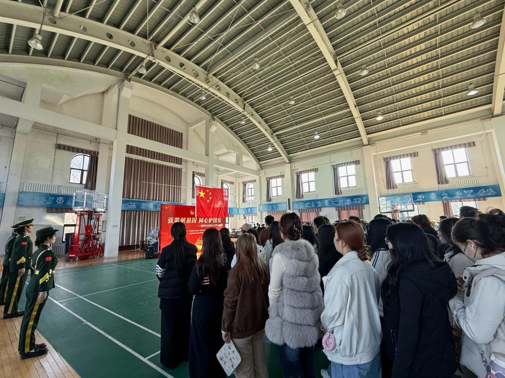 仪式在庄严肃穆的氛围中拉开帷幕。管弦系管乐团现场吹奏雄壮激昂的《义勇军进行曲》,鲜艳的五星红旗冉冉升起。全体师生肃立注目,齐声高唱国歌,嘹亮的歌声饱含着对祖国的无限崇敬与赤诚热爱,现场庄重而热烈。