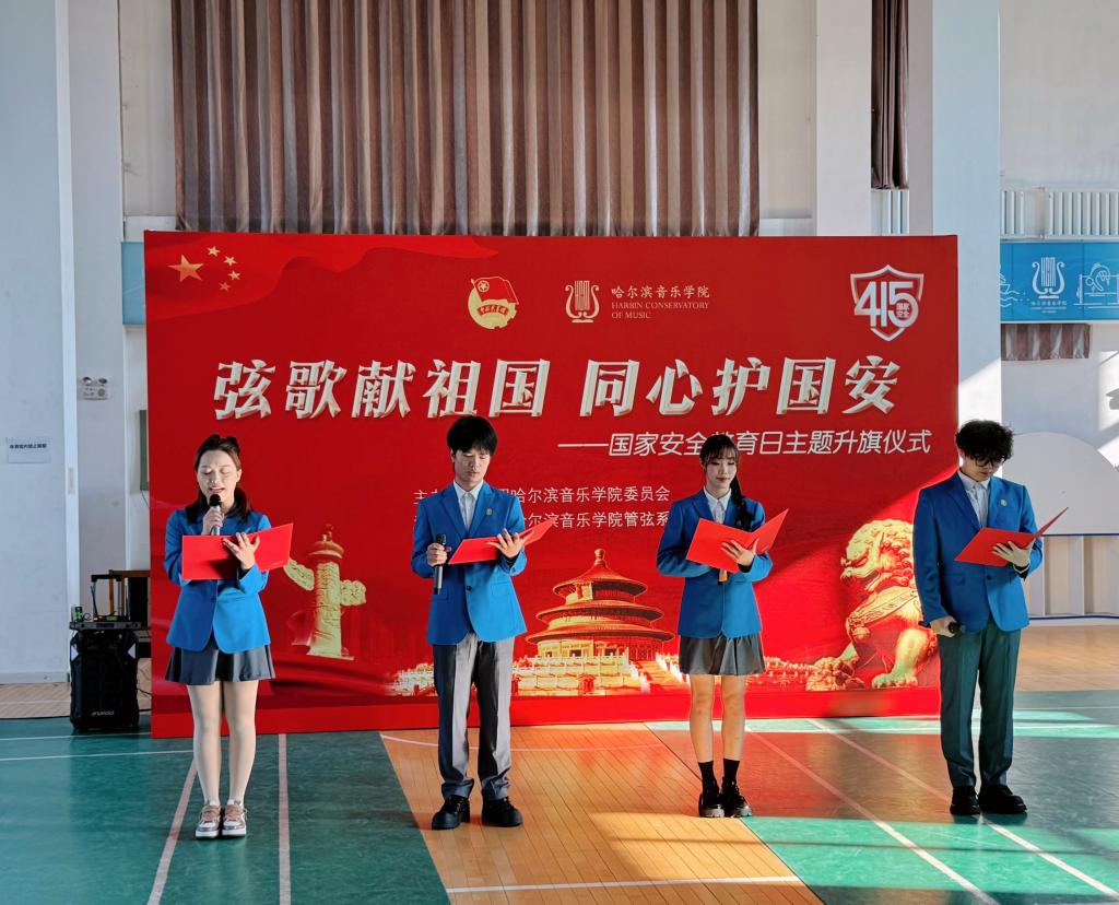 为深入贯彻落实总体国家安全观,切实引导全体学生增强国家安全意识,牢固树立“国家安全,人人有责”的责任理念,4月15日,学院举办“弦歌献祖国 同心护国安”国家安全教育日主题升旗仪式。学院宣传统战部(党委教师工作部)、团委、部分党总支负责人及各系团委书记与2025级全体青年学生共同参加。
