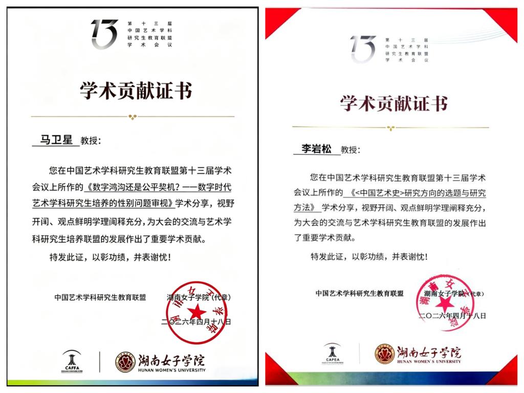 鉴于两位教授在研究生培养以及联盟学术会议中的卓越贡献和突出成绩,中国艺术学科研究生教育联盟特别授予她们“学术贡献奖”。这一荣誉不仅是对两位教授个人学术成就的高度认可,更是对哈尔滨音乐学院艺术学系在艺术学科研究生教育领域不懈努力的充分肯定。