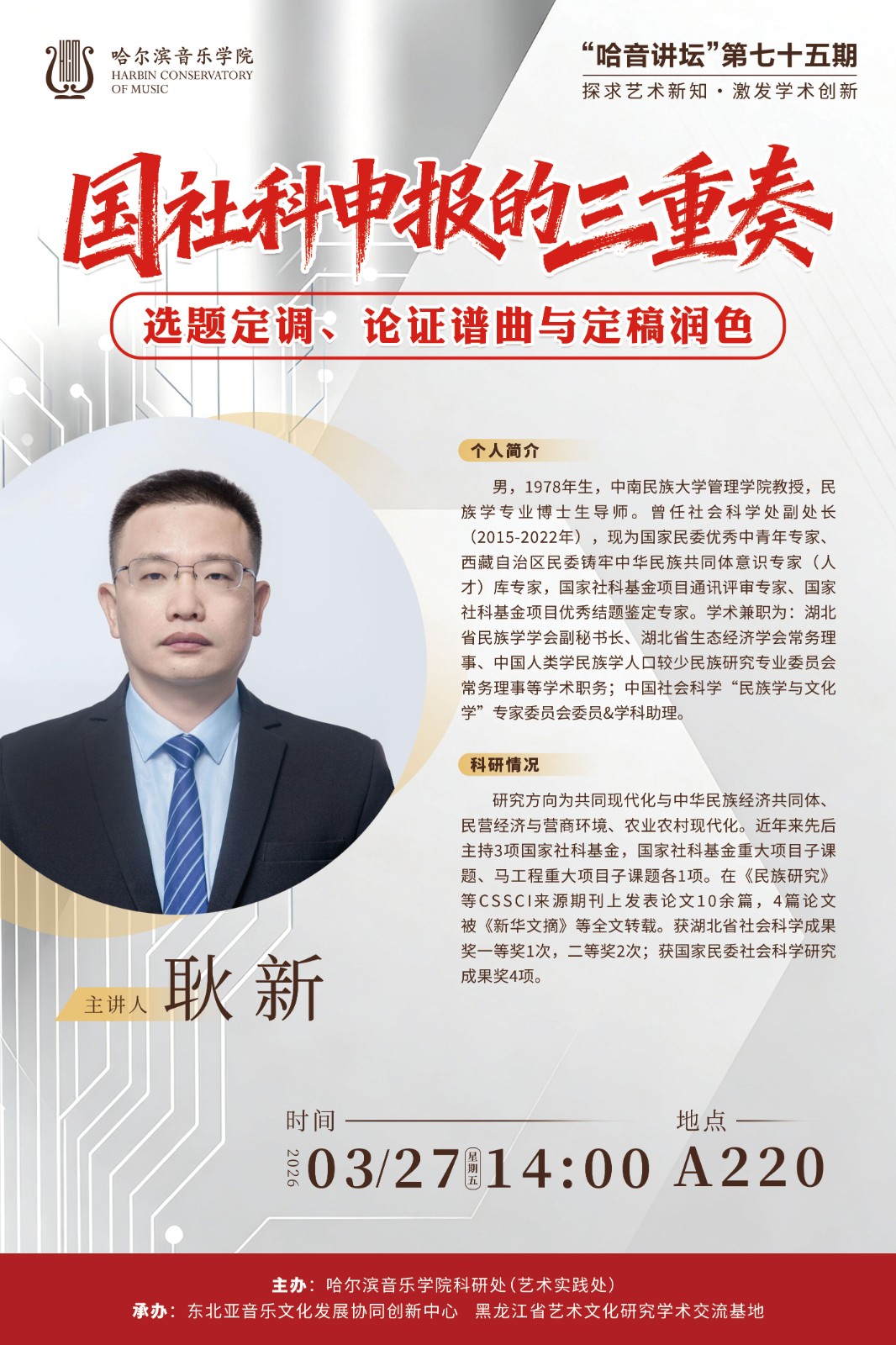 “哈音讲坛”第七十五期——《国社科申报的“三重奏”:选题定调、论证谱曲与定稿润色》