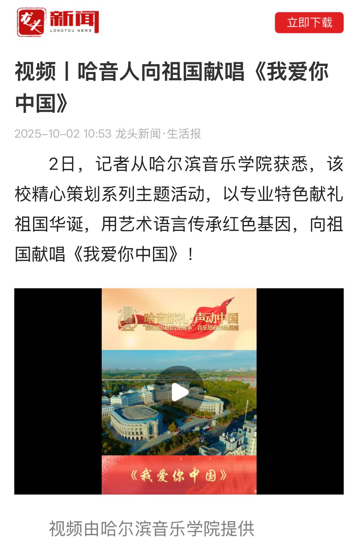 下一条:龙头新闻:哈尔滨音乐学院倾情制作国庆特别版MV《如愿》