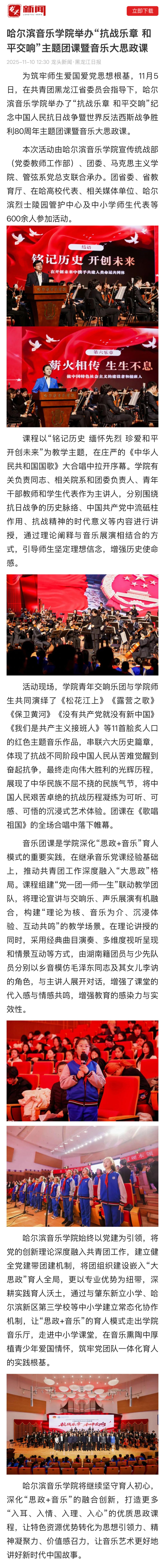 上一条:人民日报:哈尔滨音乐学院举办“抗战乐章 和平交响”主题团课暨音乐大思政课