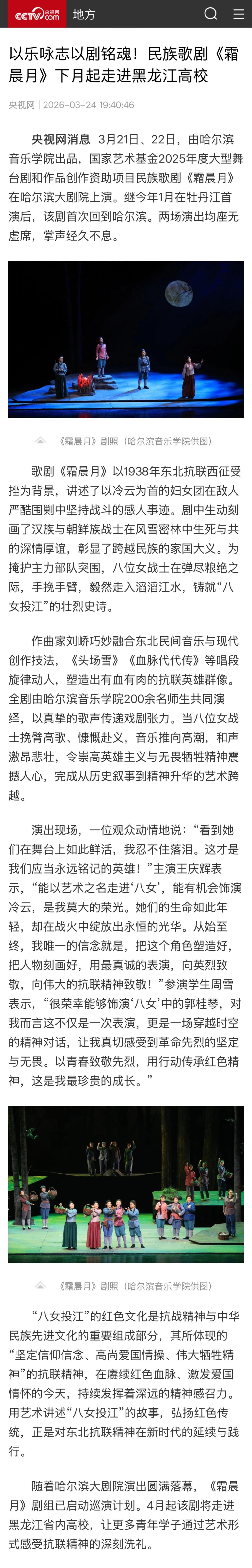 下一条:东北网:民族歌剧《霜晨月》在哈尔滨大剧院圆满落幕 抗联精神闪耀冰城