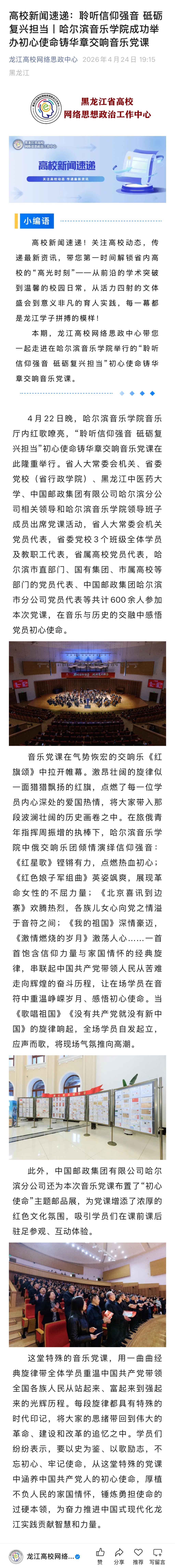 上一条:新华社:哈尔滨音乐学院举办“聆听信仰强音 砥砺复兴担当”交响音乐党课
