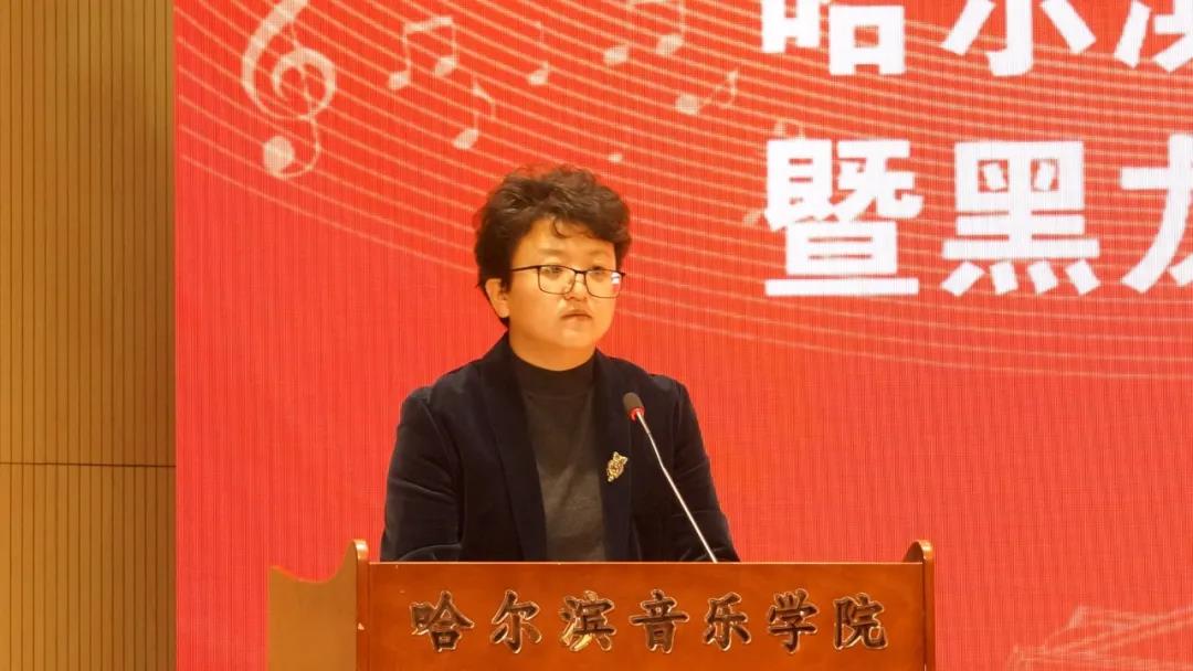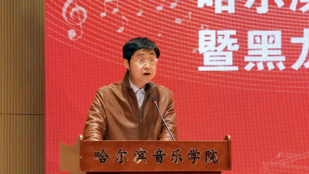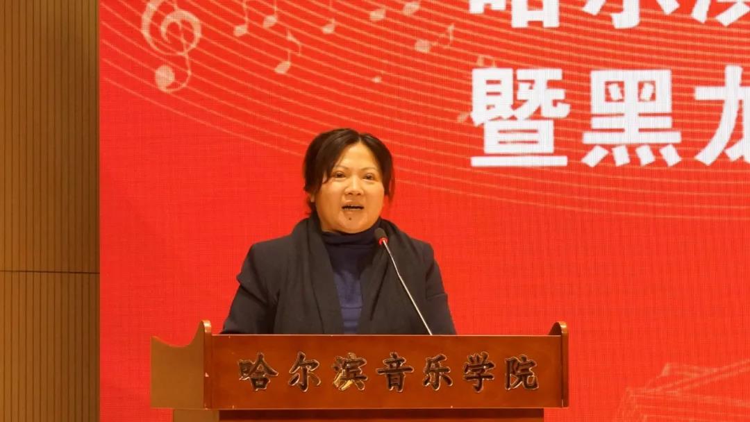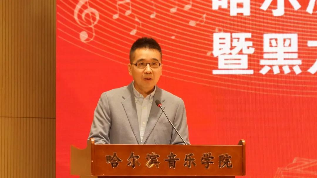 哈工大社科联秘书长卜琳华为学院社科联成立致贺词。哈音首任社科联主席、省艺术文化学术交流基地主任杨燕迪和省社科联副主席王宏宇分别发表讲话。